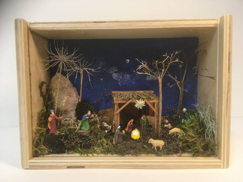Een kerstsstalletje met herders, schapen en 3 koningen.