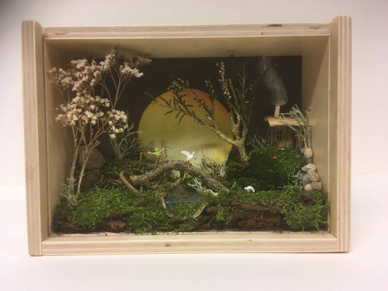 Een jongetje klimt uit een ei om de wereld te gaan ontdekken.