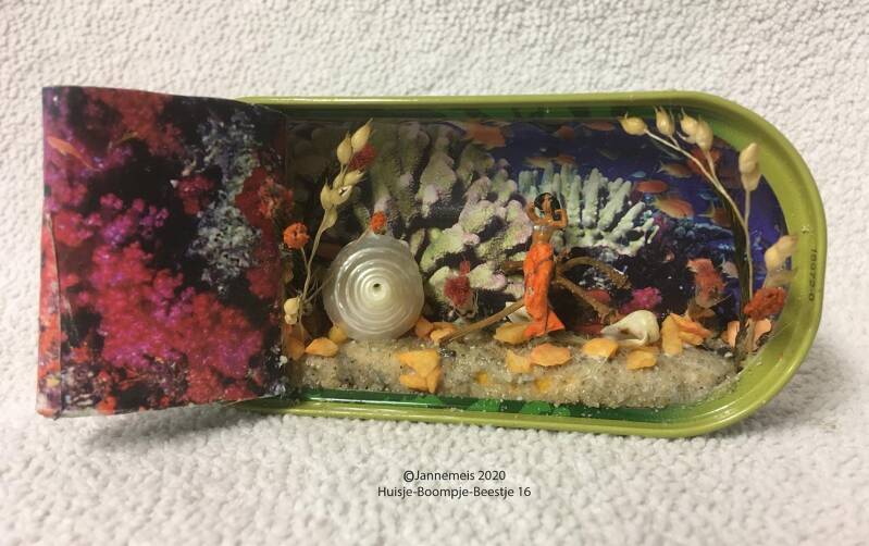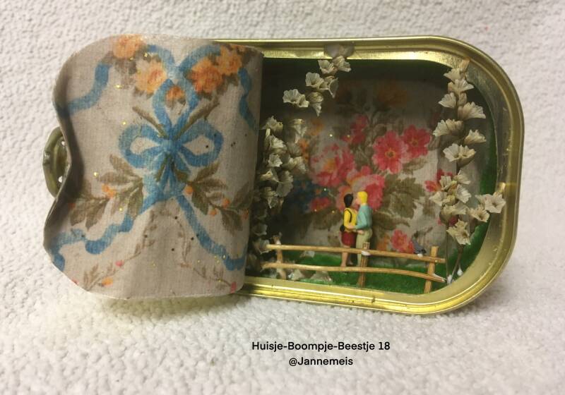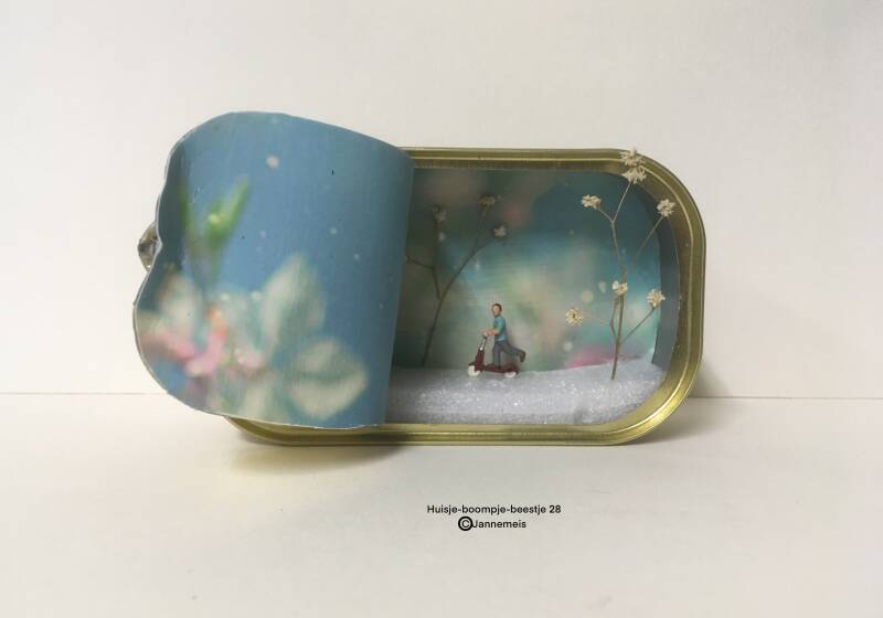 Een ansjovisblikje met opa en kleinkind in de sneeuw